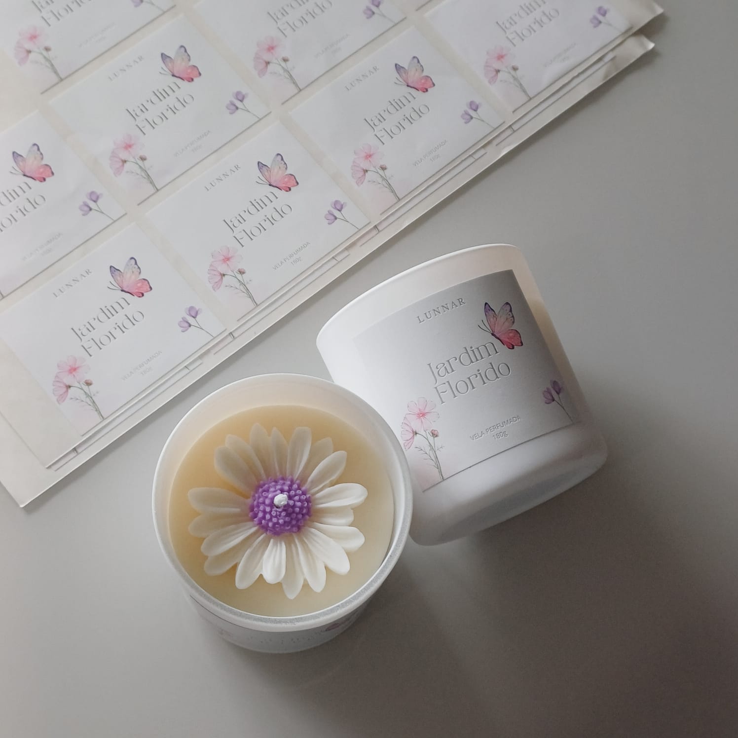 Delicada aos olhos e envolvente ao olfato, a vela Jardim Florido é uma verdadeira experiência sensorial. Seu design exclusivo traz uma flor artesanal no topo, disponível nas cores rosa ou lilás, que transforma qualquer ambiente em um refúgio de beleza e serenidade.